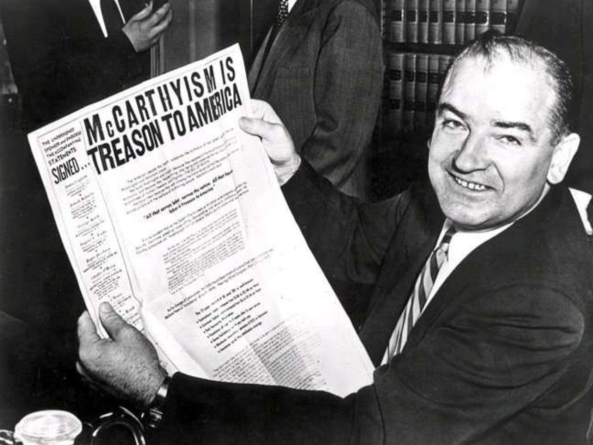 1950…. Στις ΗΠΑ, ο γερουσιαστής Τζόζεφ Μακάρθι κατηγορεί 200 στελέχη του Υπουργείου Εξωτερικών ότι είναι μέλη του Κομμουνιστικού Κόμματος των ΗΠΑ, δηλώνοντας ότι διαθέτει αποδείξεις για τις αριστερές πολιτικές πεποιθήσεις τους.