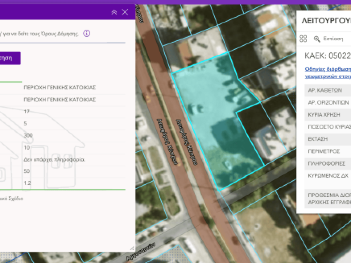 Οι πληροφορίες αυτές προβάλλονται χωρικά πάνω στο ίδιο το γεωτεμάχιο, συνδυάζοντας τα κτηματολογικά δεδομένα με τα πολεοδομικά στοιχεία σε ένα ενιαίο ψηφιακό περιβάλλον και διασφαλίζοντας την απόλυτη ταύτιση της ιδιοκτησιακής εικόνας με τους κανόνες δόμησης.