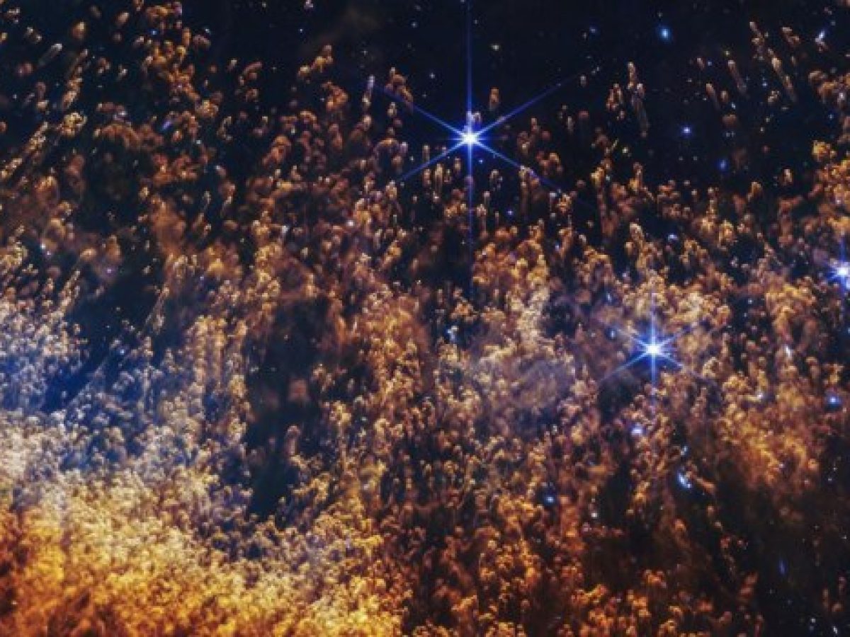 Ζουμ στην εικόνα του James Webb: κίτρινες στήλες μοριακού υδρογόνου σχηματίζονται από την ψύξη του αερίου που εκτίναξε το άστρο ([NASA, ESA, CSA, STScI, A. Pagan (STScI)]